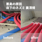 糞尿除去した後、薬剤散布による消臭・殺菌を行います。